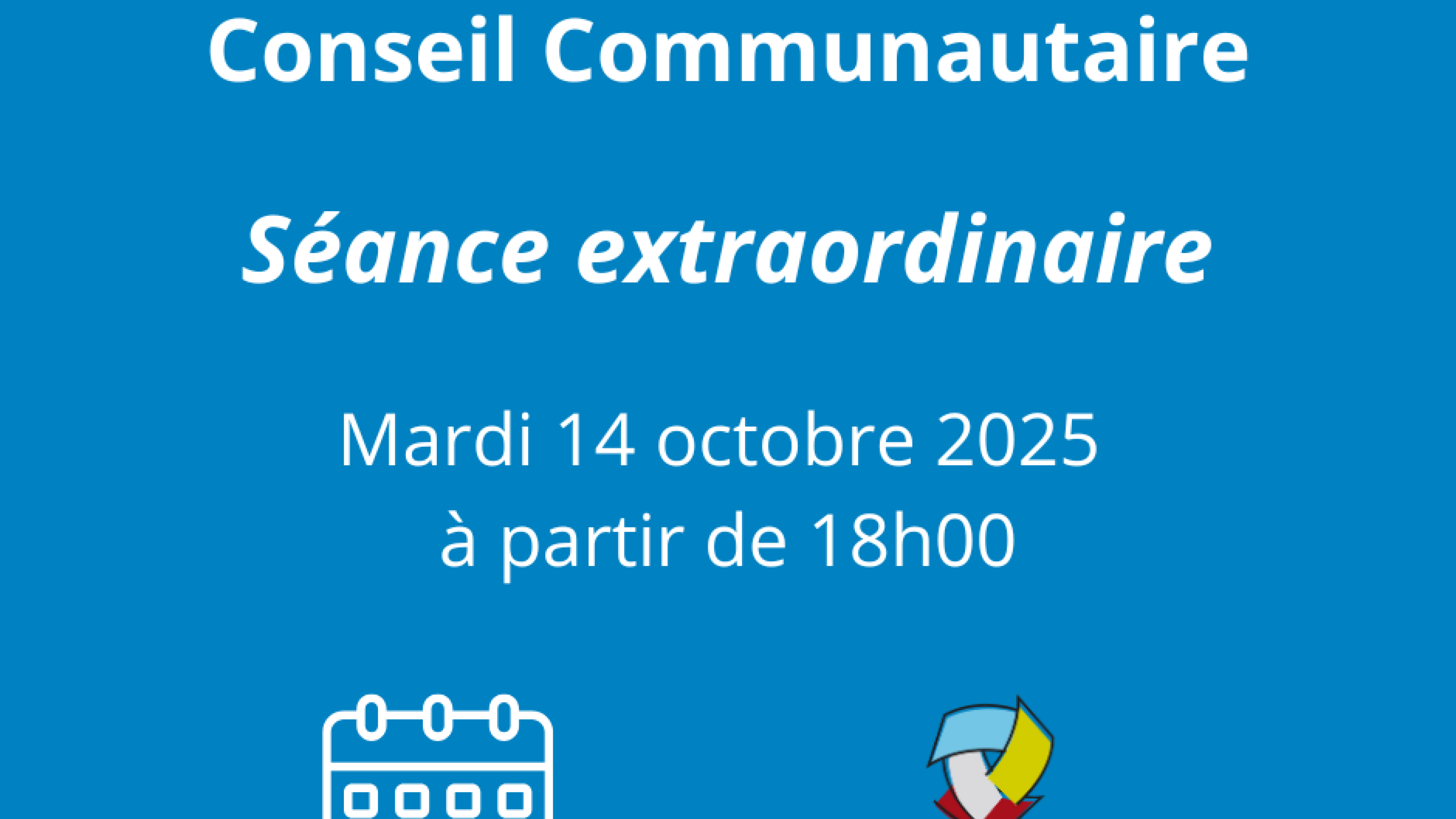 Le prochain Conseil Communautaire - séance extraordinaire - se tiendra le mardi 14 octobre à partir de 18h00.