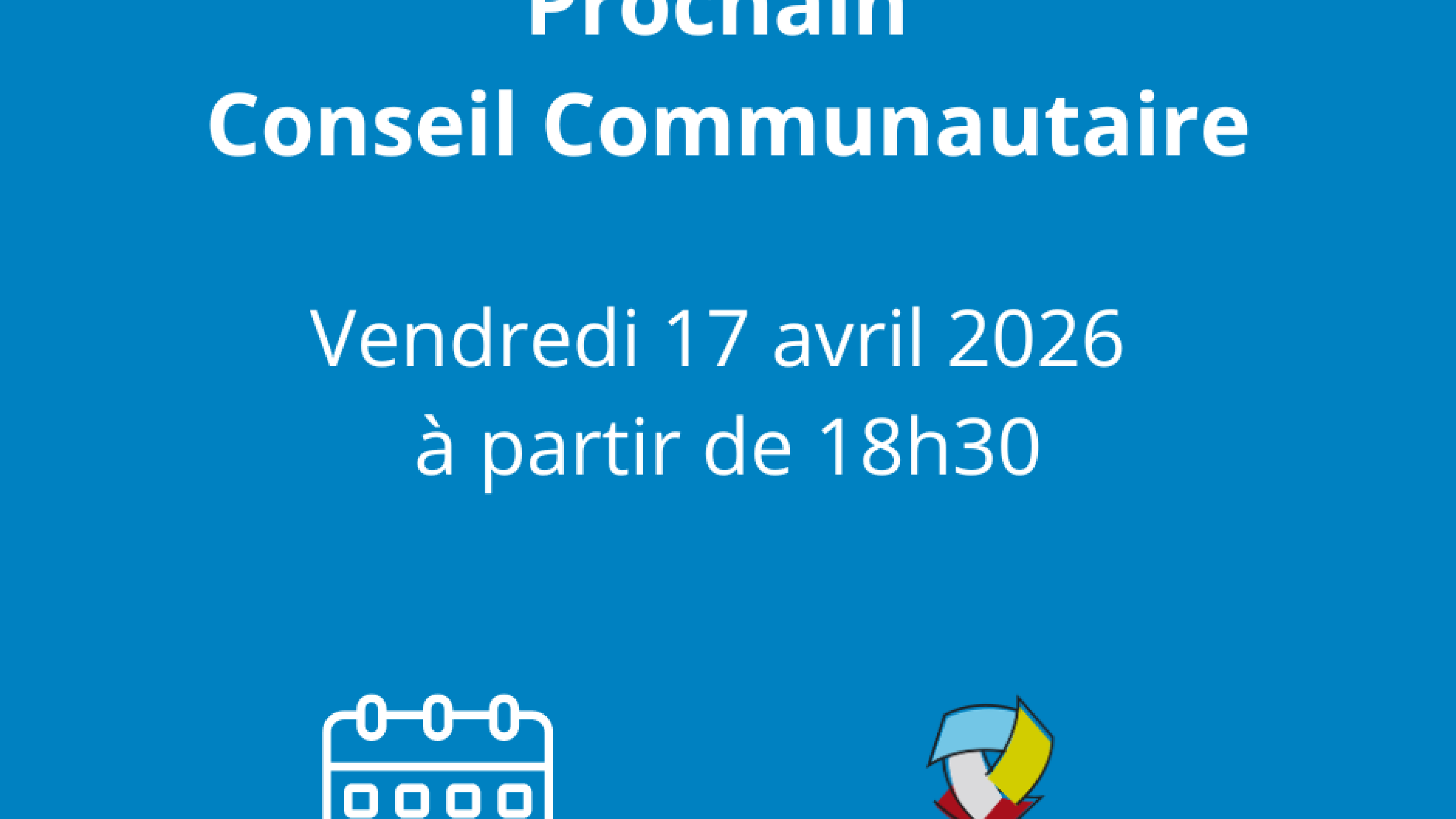 Le prochain Conseil Communautaire se tiendra le vendredi 17 avril 2026 à partir de 18h30.