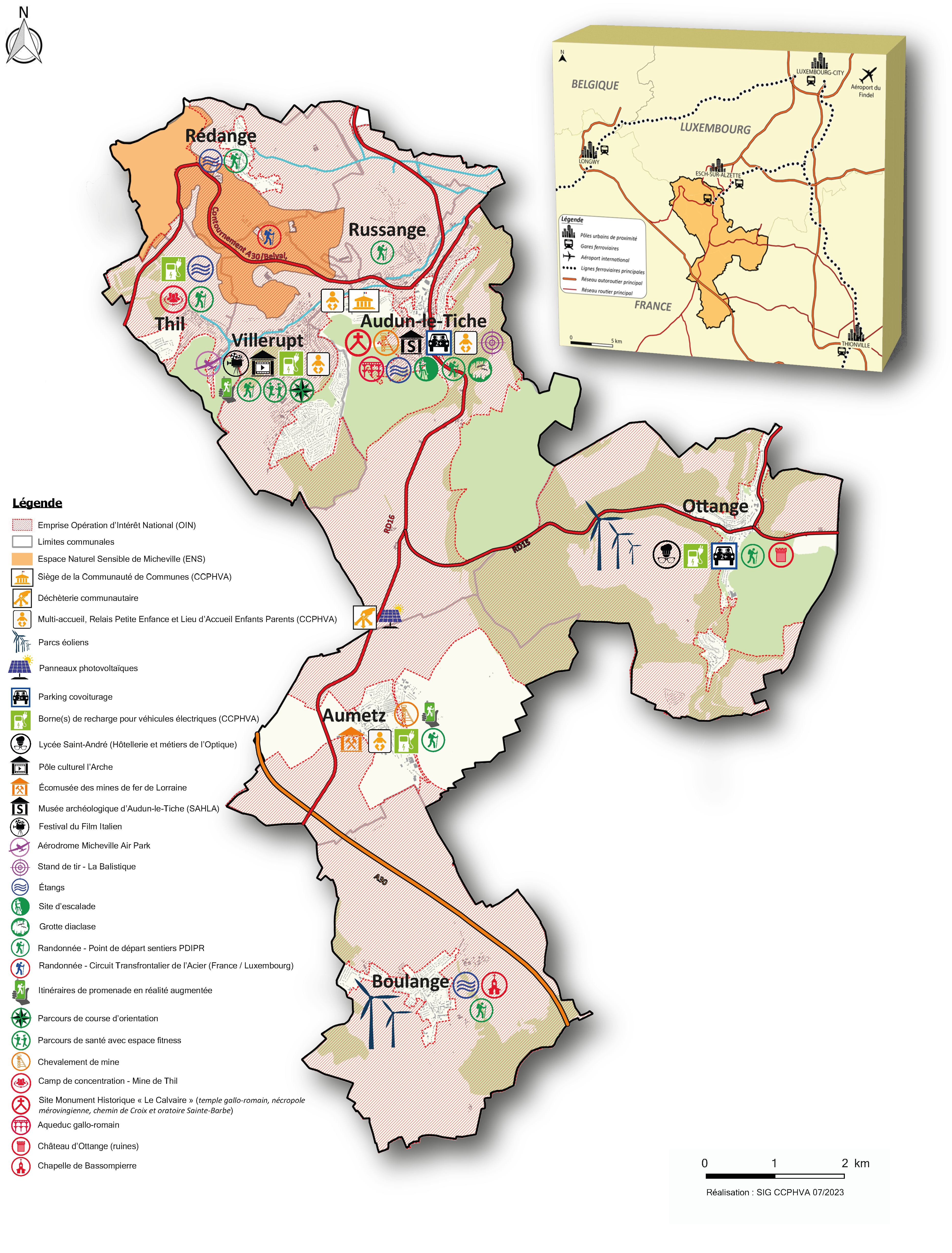 Elle a également la spécificité d'être limitrophe du Grand Duché de Luxembourg. Le projet de développement du territoire s'est aussi construit en réponse au projet Belval réalisé de l'autre côté de la frontière.