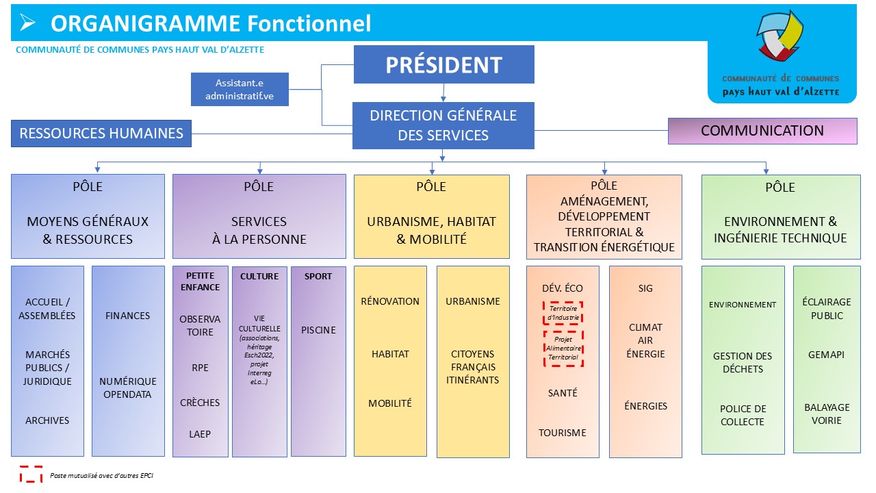 Les services de la CCPHVA sont organisés autour de grandes directions et de cinq pôles. Découvrez ici son organigramme.
